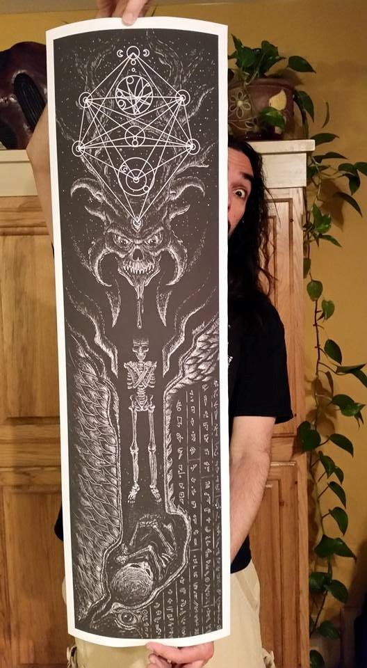 The size of this print is 10"x34" (that's almost 3 feet tall!). The actual design is 9"x33" and is the same size as the file used for the skateboards. I've included a 1/2 inch border on the prints in case you want to matte it but it looks good framed without the matte just with the white border. It's printed on a Mutoh printer on 48lb matte paper so it looks great behind glass when framed.