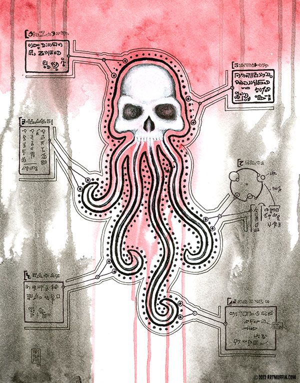 Any translation of this piece is unknown, nor is the exact implications of the strange hybrid creature in the center. This piece continues to be a cosmic mystery that may never be solved.