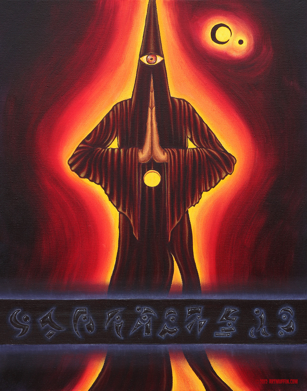 This 11" x 14" print is printed on 100lb. silk card stock (that's means it's kinda shiny, but not too shiny). As noted in the title, this is a found painting from the Temple of Gosh, believed to be representative of one of the five seasons from the planet. Not much else is known of this work. Price includes shipping in the continental U.S. All prints are shipped signed by me unless requested otherwise.